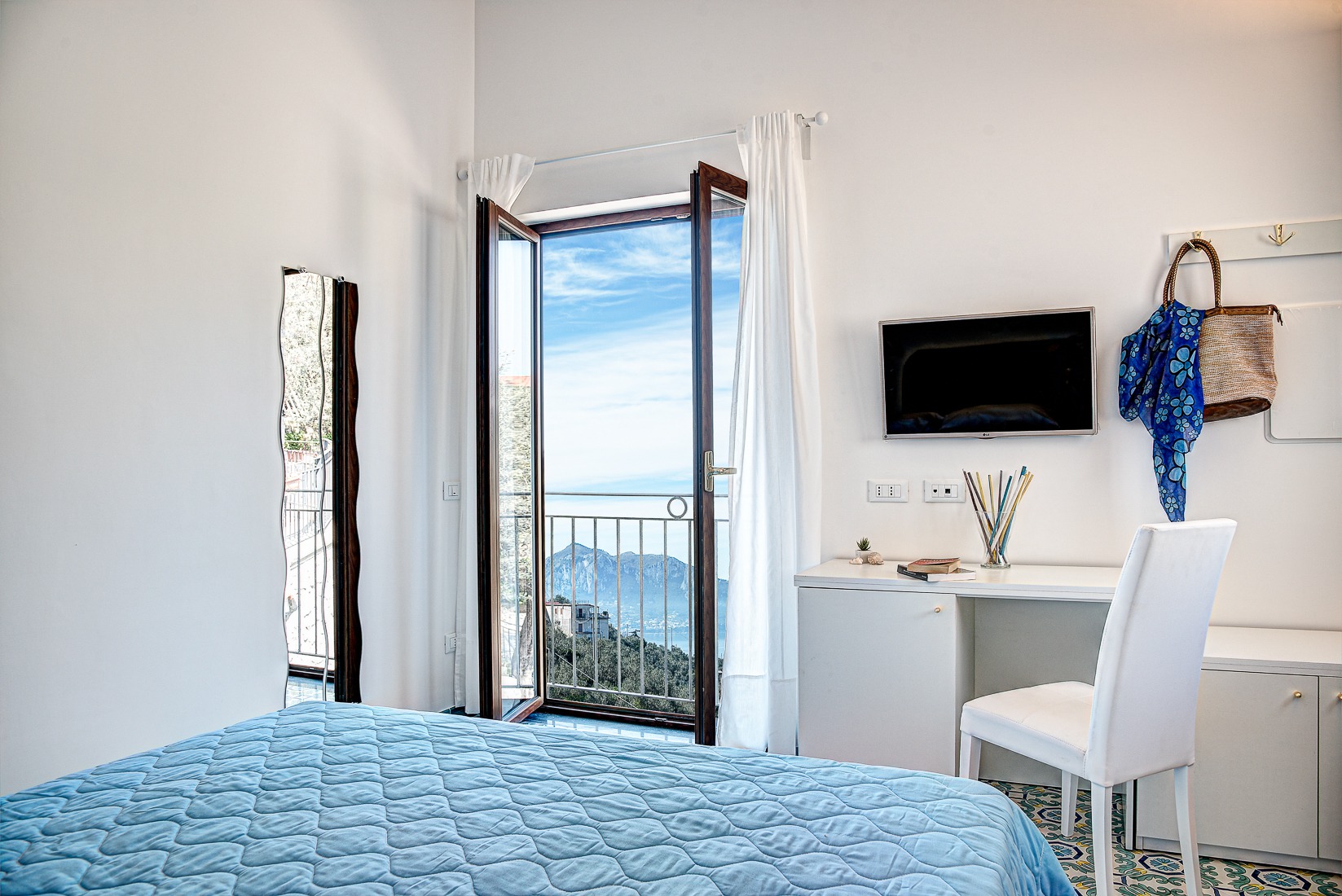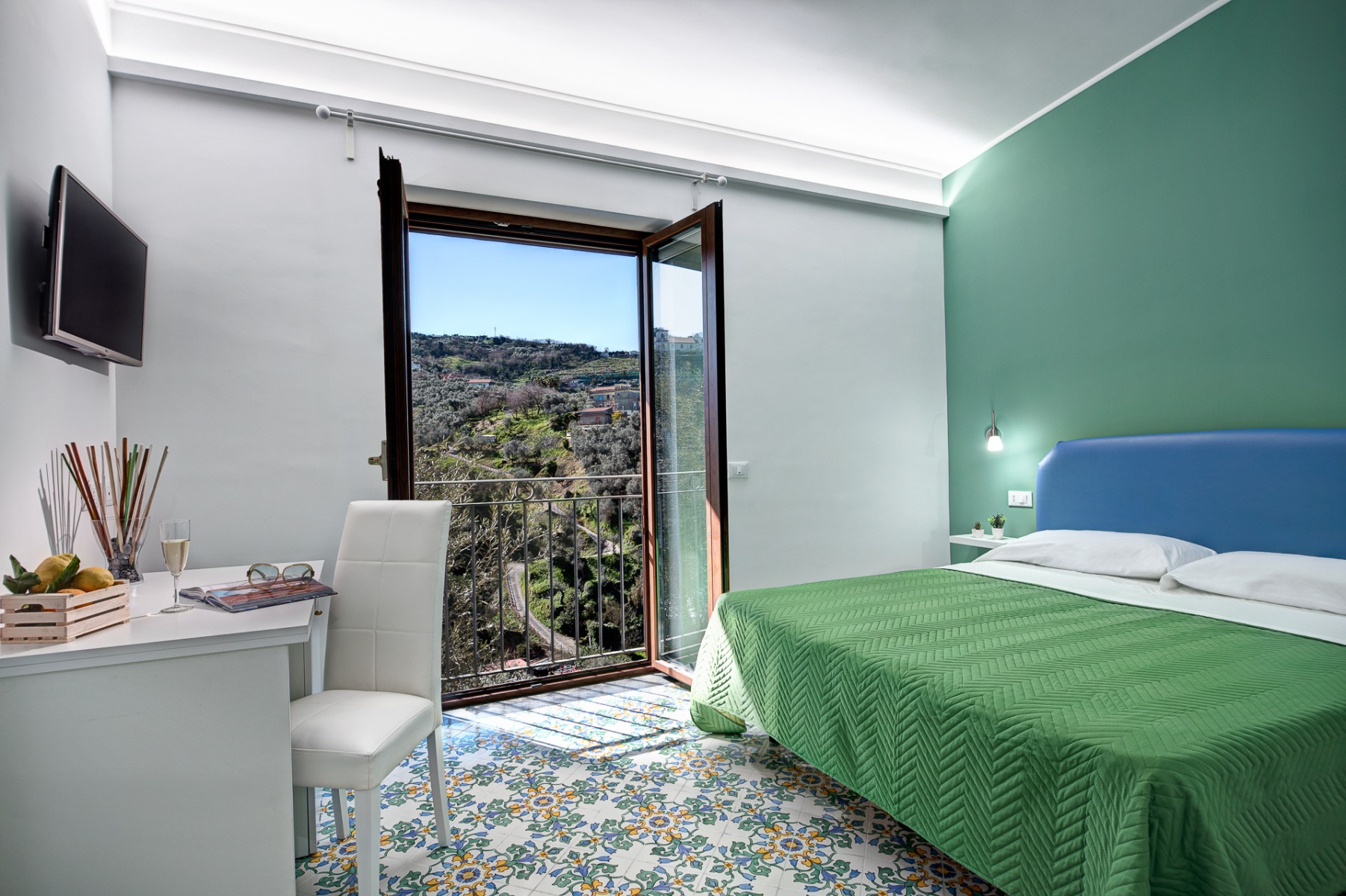 Comoda camera con vista sul nostro giardino. Dotata di tv satellitare, wi-fi, aria condizionata, frigobar, cassetta di sicurezza, telefono, bagno privato, armadio e piccola scrivania. I Letti possono essere sia matrimoniali che singoli.